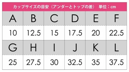 ちなみにKカップはアンダーとトップバストの差が35cmとなっており、その大きさが相当なものであるのが表からも分かるかと思います。