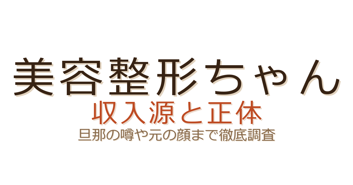 今回は、そんな美容整形ちゃんの正体や収入源、旦那の噂、整形前の元の顔まで、気になるポイントをまるっとまとめました。