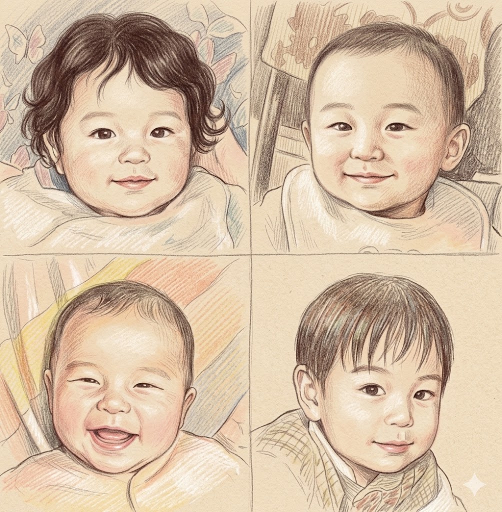 ひとつは、2016年に発売されたシングル曲「夢」のジャケットに採用された、メンバー4人の幼少期の写真です。あどけない子供時代の姿ではありますが、正真正銘ご本人たちの顔写真として公式にリリースされました。4人がそれぞれ笑顔を見せる幼少期のポートレートで、現在の面影を想像するファンも多いようです。