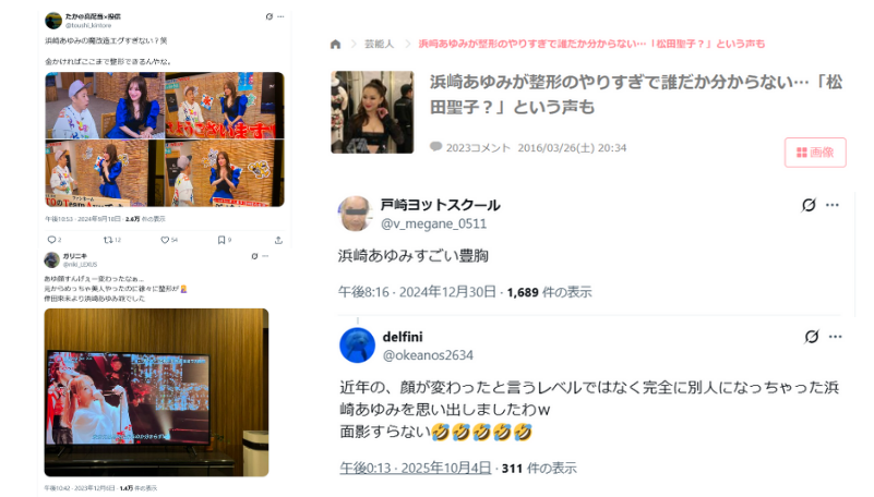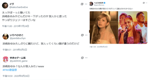 ネット上でも、浜崎あゆみさんの顔の変化などに関し感想を寄せている方やスレッドがたっていたりと関心を寄せている方が多い印象です。