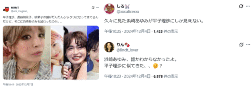 ただ一方で近年ではネット上で「平子理沙化している」「唇やフェイスラインが…」なんて話題になることも。