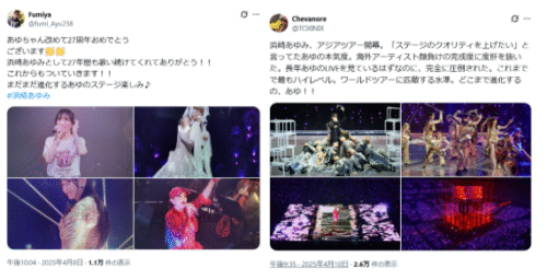 ステージ上でのパフォーマンスだけでなく、ファンも一緒に年齢を重ね中年層になった今もなお「あゆの歌に救われている」といった方も多いようです。