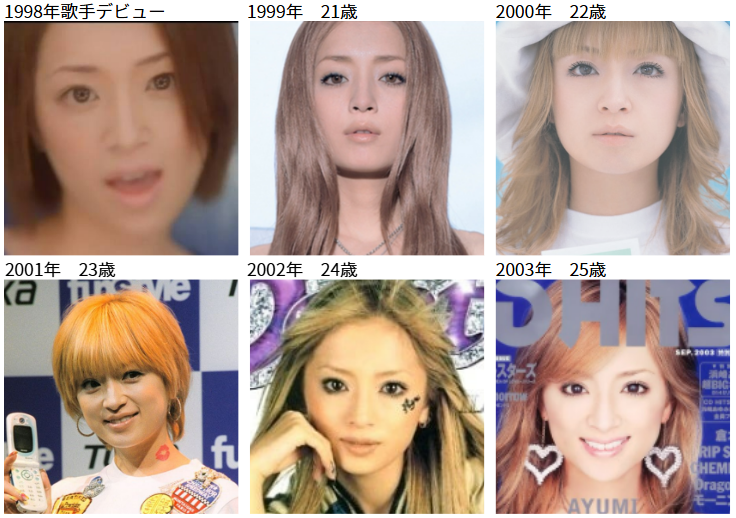 ここからは世間の皆さんが感じる浜崎あゆみさんの変化を、画像を見ながら時系列で整理していくので一緒に確認してみましょう。