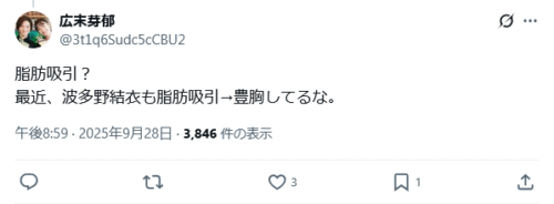 さらに上記画像は2025年10月4日に波多野結衣さんのインスタに投稿された画像です。