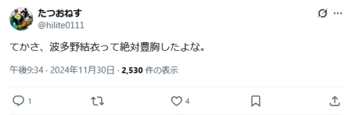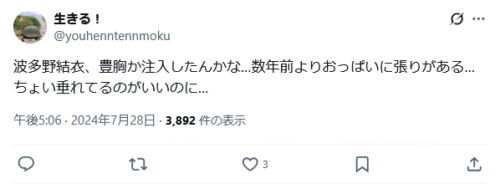 ただ、2024年頃から風向きが変わったようで、少数ですが豊胸を疑う声が確認できます。