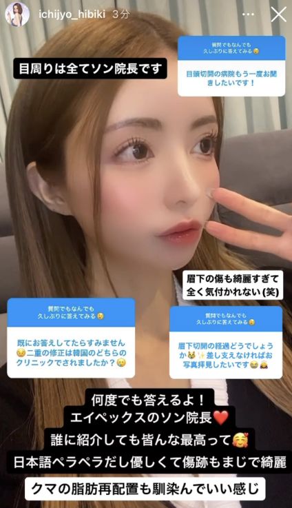 キャバ嬢は顔が資本と言っても過言ではないため、一条響さんは進んでこの施術を行った可能性が高いですね。