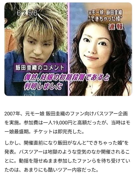 • バスツアー開催前日に飯田圭織さんがデキ婚発表