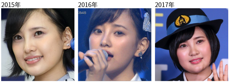 2017年になるとパーツの変化以上に、顔がまん丸になっていることから体調を心配されるファンも多くいたようです。