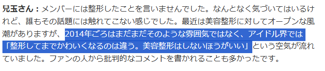 有名アイドルの苦悩を赤裸々に語ってくれたからこそ、兒玉遥さんの勇気ある整形の公表や苦悩が多くの人々に伝わったのでしょうね