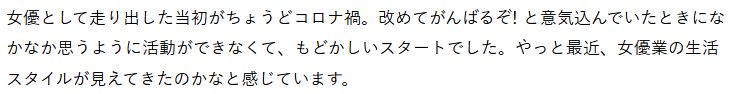 しかしその道は平坦ではなく、コロナ禍で撮影やオーディションがストップし、思うようにことが進まないもどかしさに直面していたそうです。
