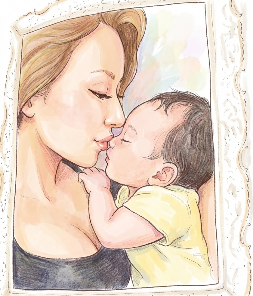 そしてその横には、スタンプで顔は隠されているものの、母親にしっかりと抱きつくお子さんの姿も。