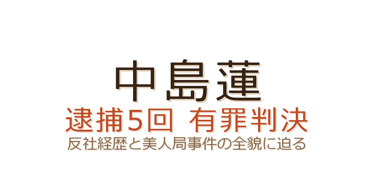 - 中島蓮さんは5回逮捕され、2025年2月に覚醒剤教唆で有罪判決(懲役1年4ヶ月・執行猶予3年)を受けた