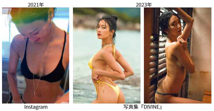 確かに前後に投稿された水着ショットと全然胸の見た目が違う!!