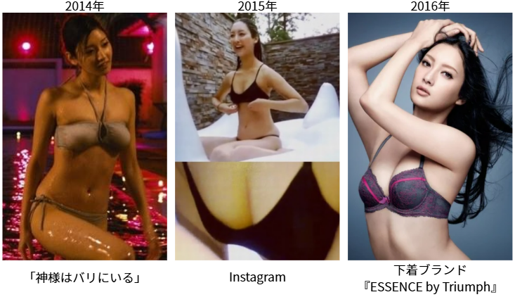 また2016年には女性下着トリンプのイメージキャラクターに就任し、ランジェリー姿を披露しています。