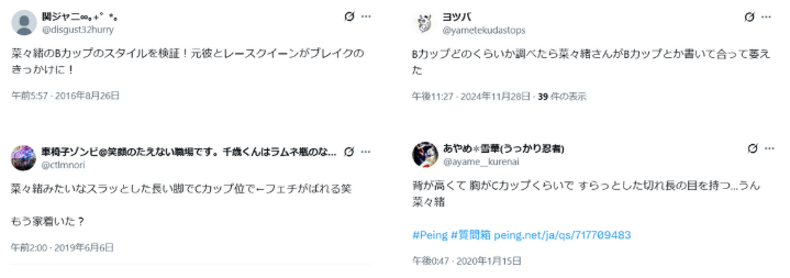 - カップ数:B~Cカップ程度(推測)