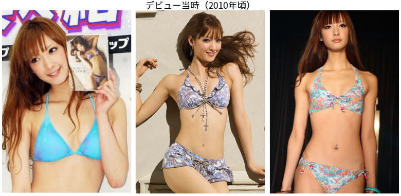 デビュー当時は女子大生モデル、三愛水着イメージガール、レースクイーンなど露出の多い装いで圧巻のスタイルを披露していました。