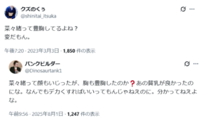 菜々緒さんは嫌悪感を示しながらも「こんな貧乳でも豊胸できるなら、してますよ!」と反撃されています。