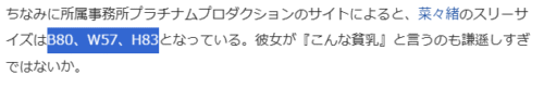 ただデビュー前の菜々緒さんのスリーサイズは「77-57-85」とされていました。