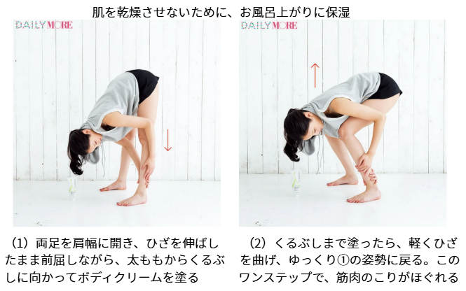 お風呂上りにリンパマッサージをし、時間は決めていないがストレッチをするようにされているんですって。