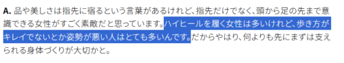 「歩き方や姿勢が悪いと魅力が半減してしまう」からこそ、身体を支える筋肉づくりが大切だと言うことをインタビューで語っています。
