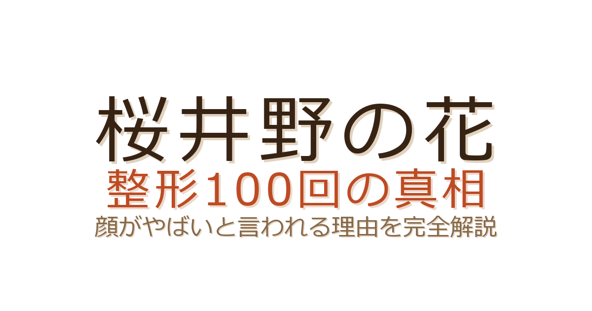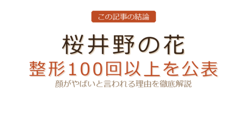 「顔がやばい」「整形しすぎ」と言われることもありますが、桜井野の花さん本人が語った内容をもとに、どこをどのように整形してきたのか部位ごとに追っていきます。
