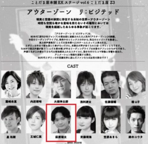 そのイベントとは、彼の母校とされる「専門学校ESPエンタテインメント東京」のホールで行われた朗読劇『ことだま屋本舗EXステージvol.6「アウターゾーン リ:ビジテッド」』です。この舞台の公式チラシやキャスト一覧には、はっきりと「萩原琉太」の名前が刻まれていました。