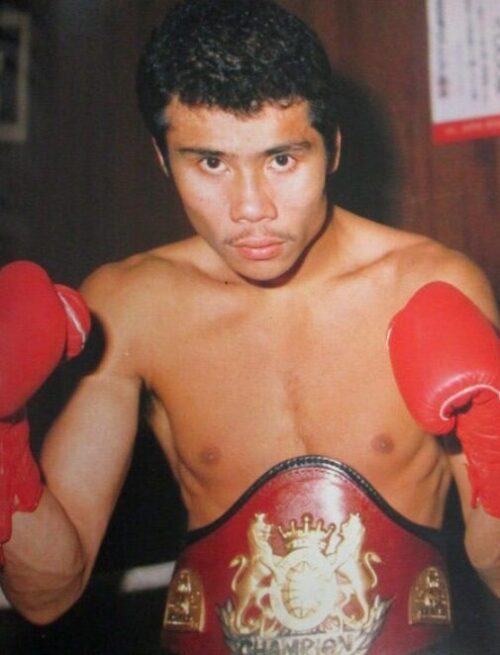 • 1982年4月8日に2度目の世界挑戦でWBA世界スーパーフライ級王者ラファエル・ペドロサ(パナマ)に挑戦し、15回判定勝ちで世界王座獲得